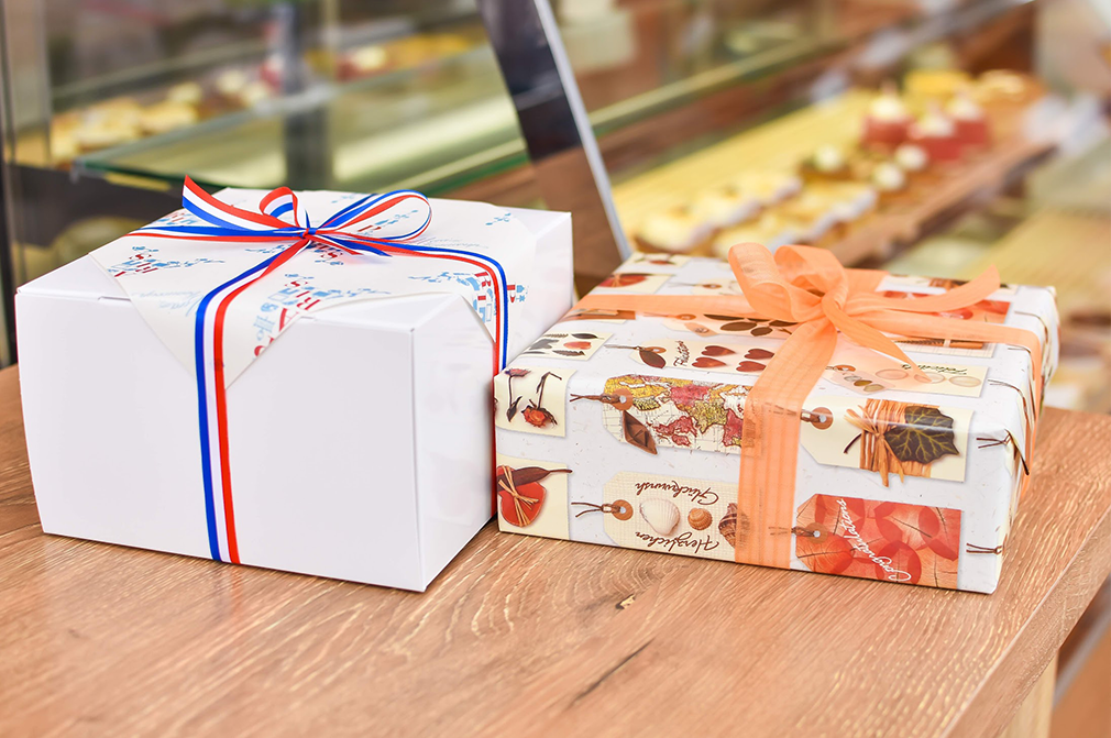 ラッピング時に箱で包むことも可能。配送も行なっているため、実際に足を運ぶ事が困難でも購入する事ができます。