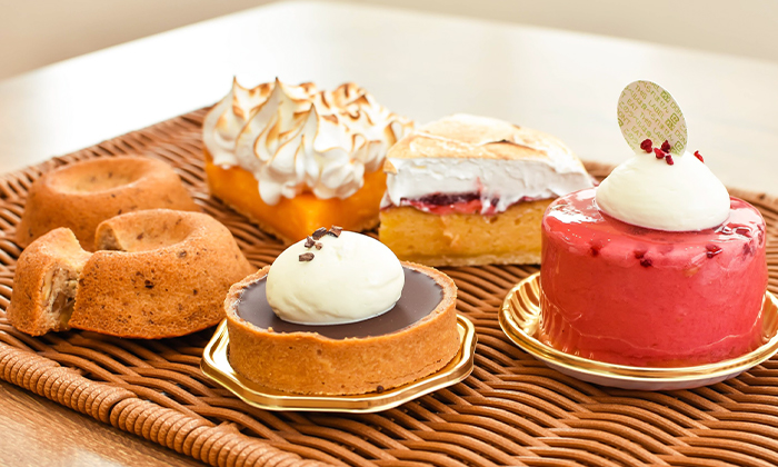 レモンパイと同様、タルトの内側にレモンカードでタルトに食感を残しまるでフレッシュなレモンを丸のまま食べているかのごとく錯覚する「タルトシトロン」。練りパイ生地にシナモンとナツメグを入れたアーモンドクリームとシャキシャキ感を残したキャラメルリンゴ。相乗効果により抜群に美味しいアップルタルト「りんごタルト」。至高の4品を定番とし迎え入れてくれます。