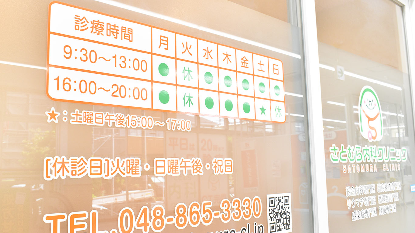 「クリニックが空いている時間に、なかなか自分の時間を確保できない!」というあなたでも大丈夫。『さとむら内科クリニック』では、平日の20時まで診療を行っています。また、平日だけに限らず土日も診療可能なので「平日はどうしても時間をつくることができない」という方でも、週末を利用して来院することが可能。