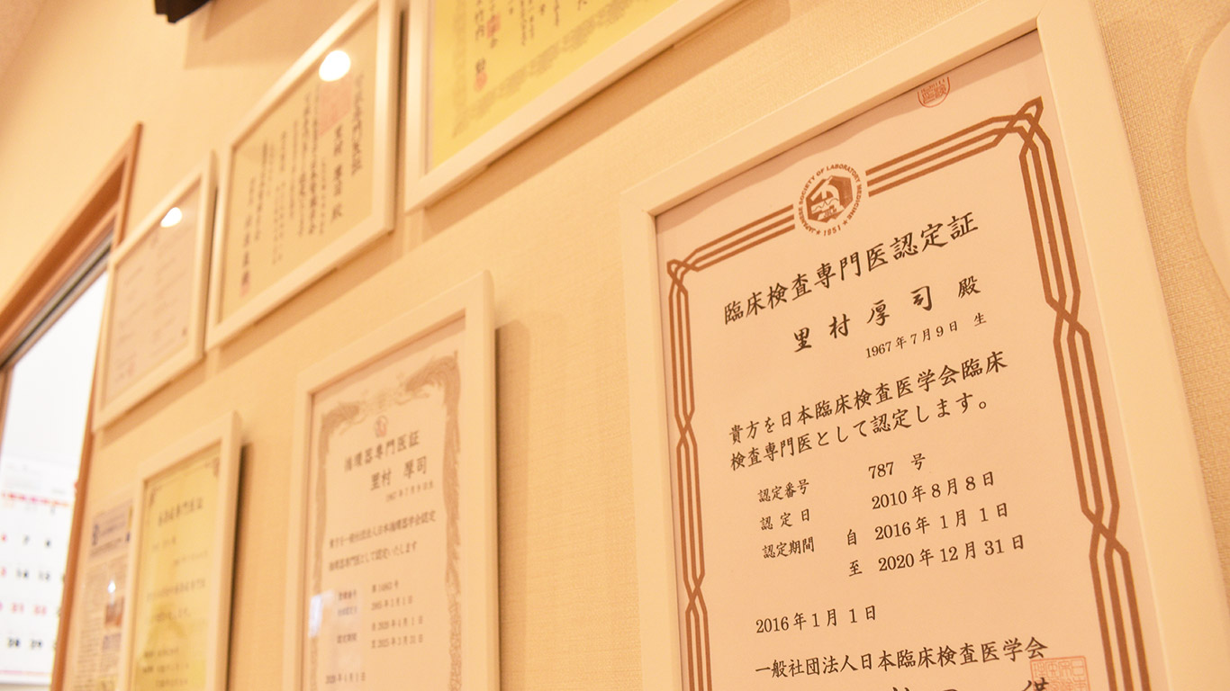 里村院長は、埼玉県立浦和高等学校を卒業した後、福島県立医科大学を卒業しました。その後、日本大学に25年在籍し、数多くの資格を取得されたのだそう。里村院長は、総合内科専門医をはじめ、腎臓専門医・指導医、リウマチ医・指導医、感染症学会専門医・指導医、循環器学会専門医、臨床検査専門医などの幅広い分野の資格をお持ちです。